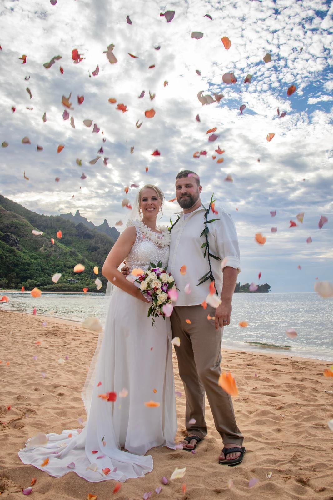 State Beach Permit: There is a fee added for a state-mandated permit for all Kauai weddings on the beach. Beaches are public land. For 9 or less people, it costs $60; for 10 or more people, it costs $85.